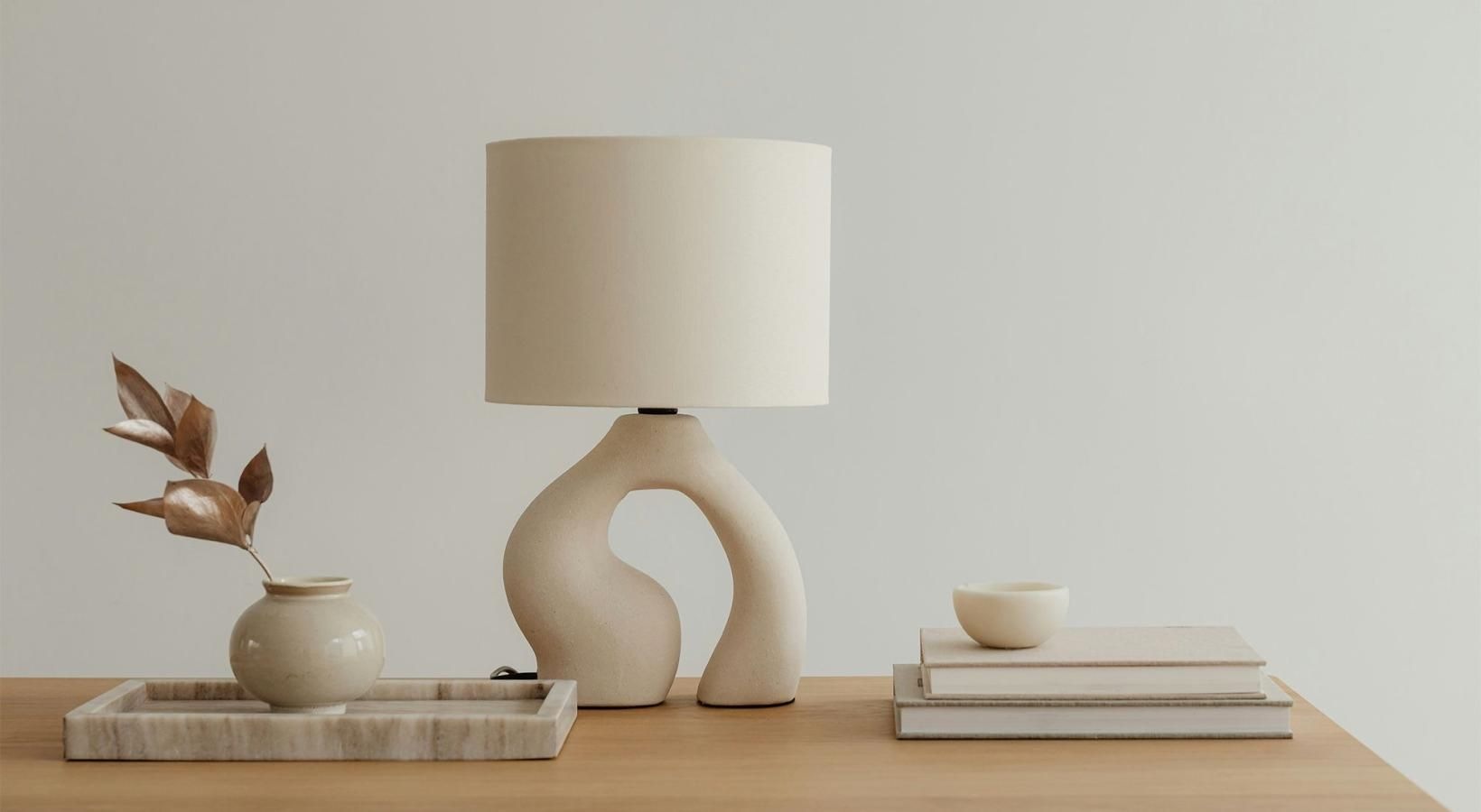 • a lamp, stack of books, and decor
