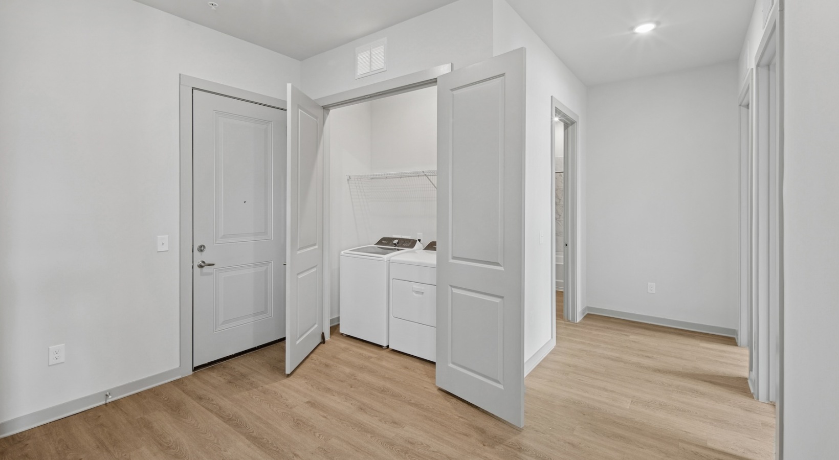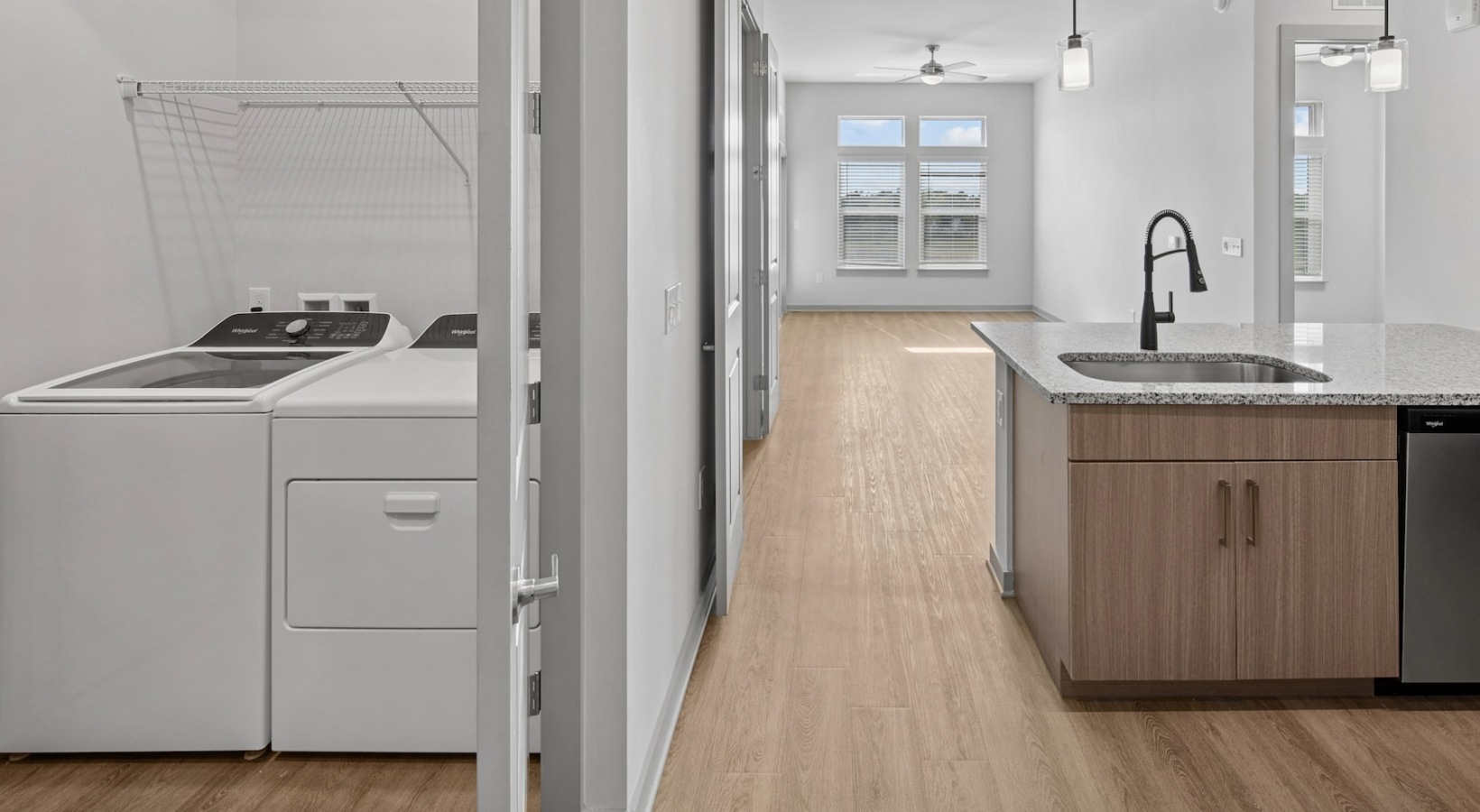 • a kitchen and a closet with a washer and dryer