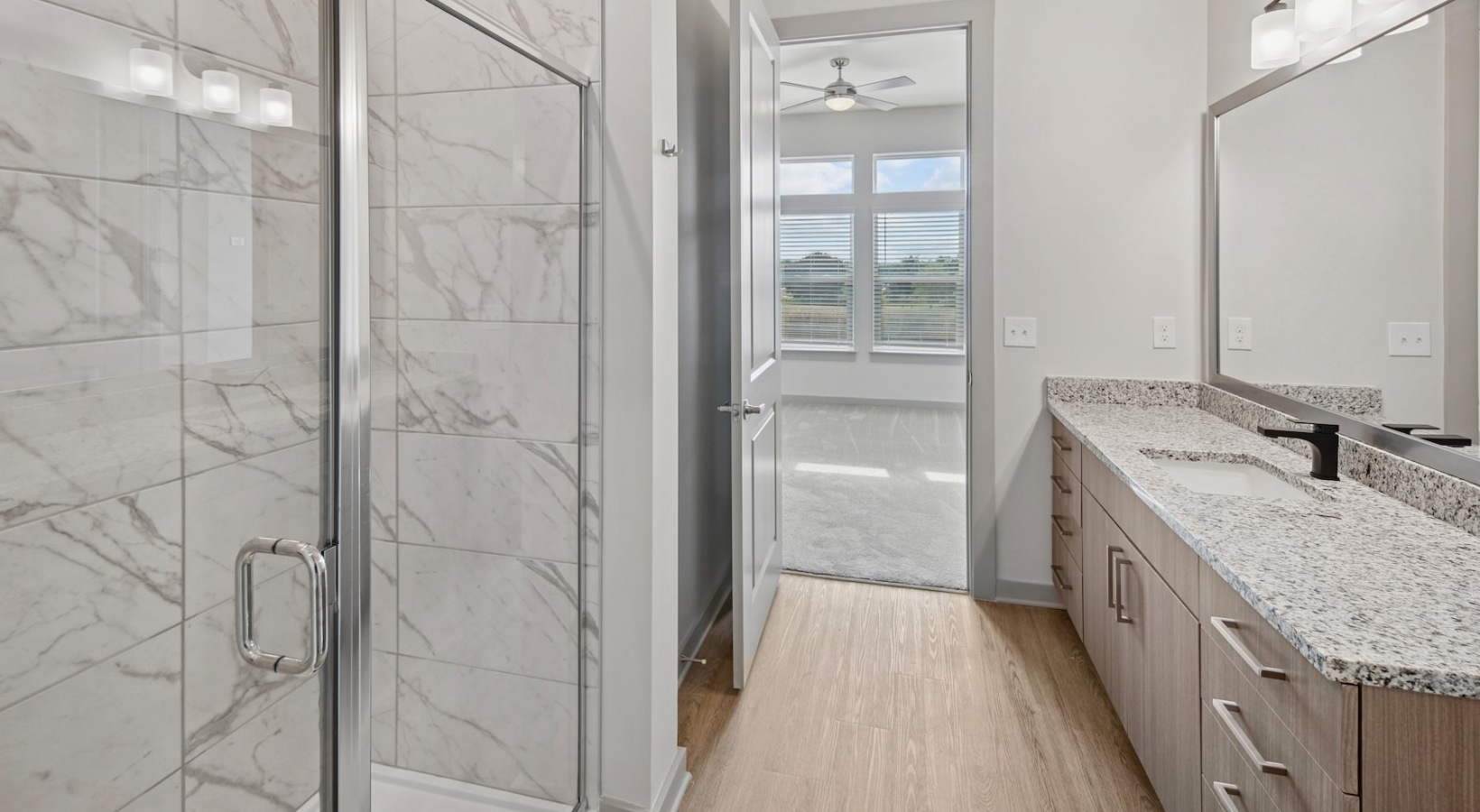 • a bathroom with a glass shower