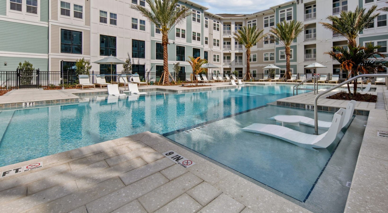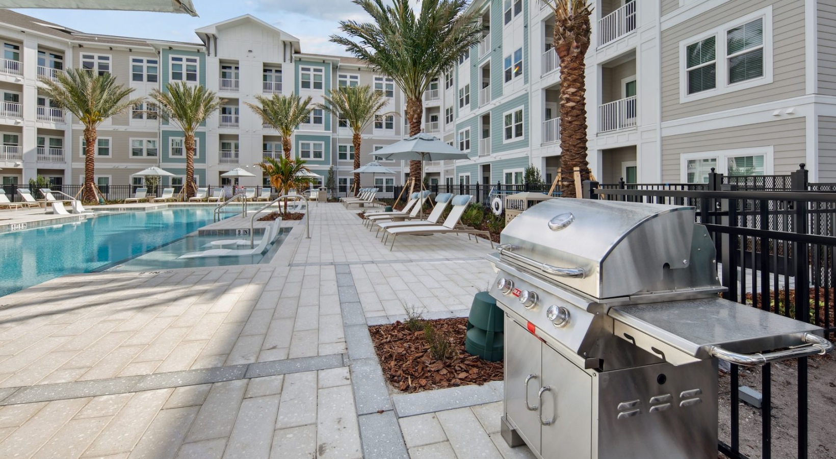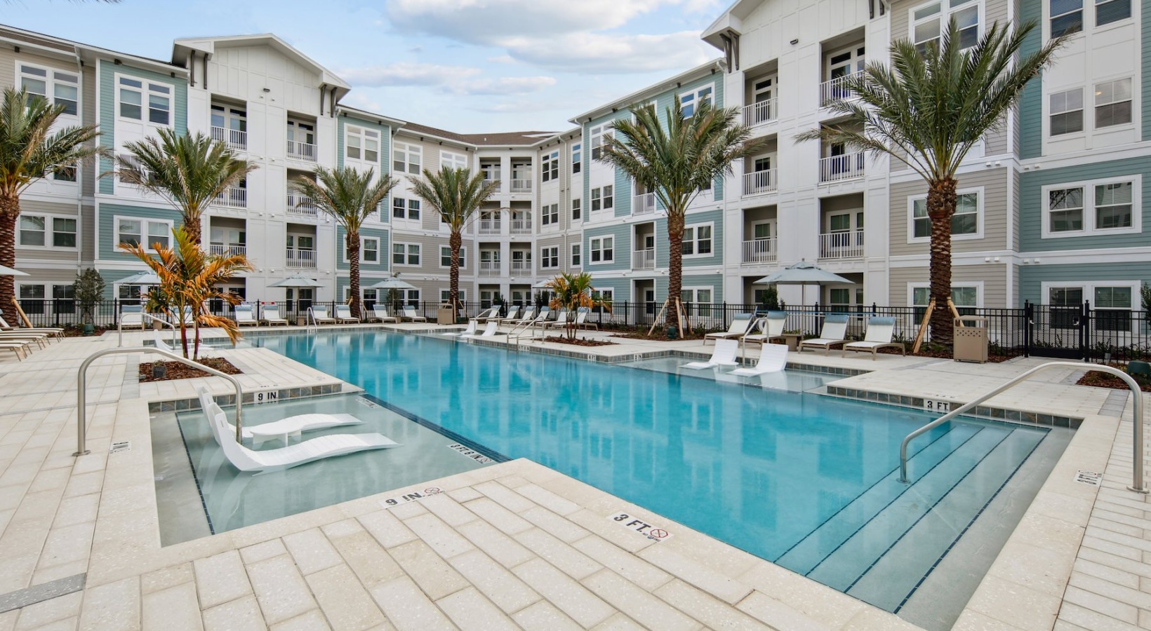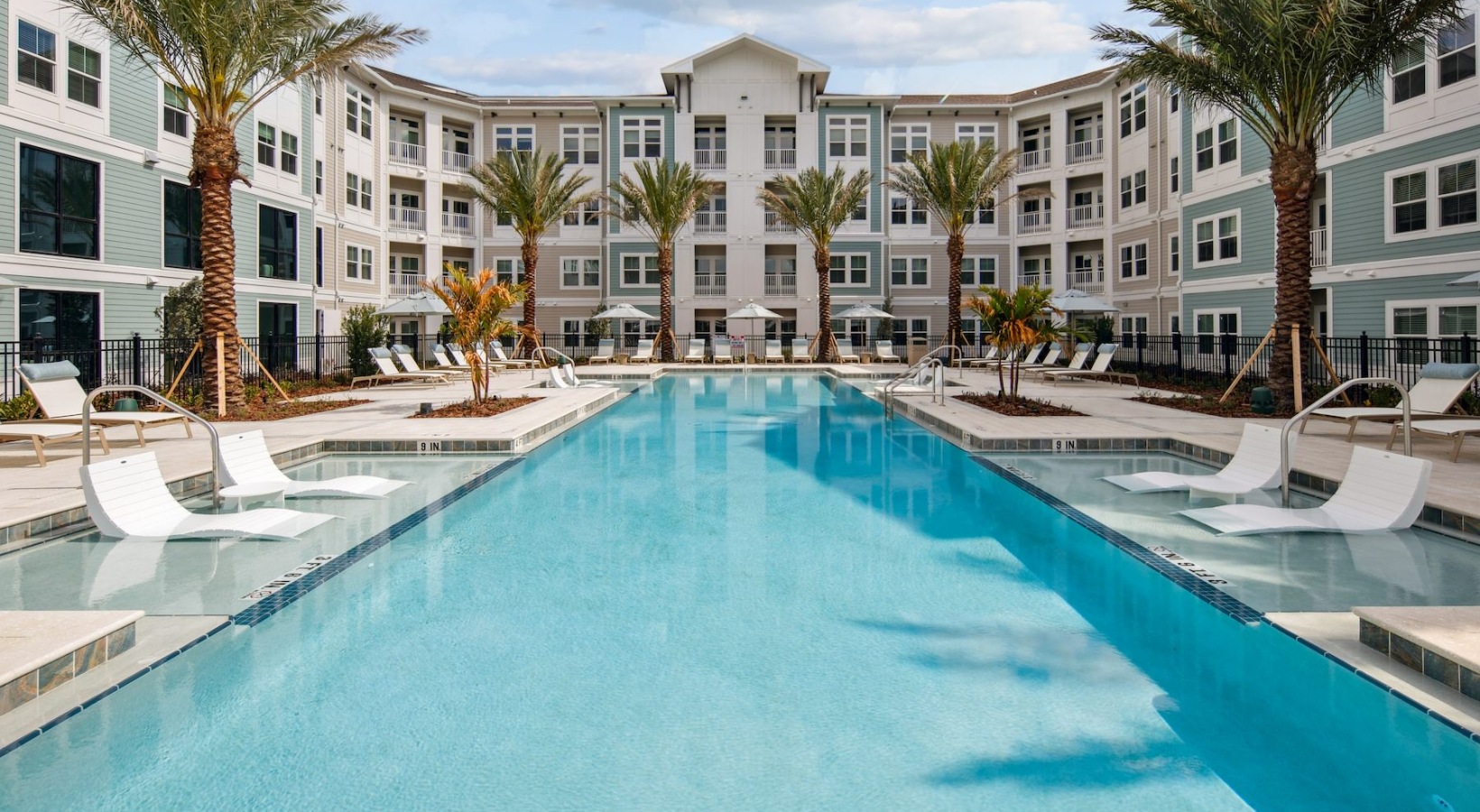 • a pool with palm trees